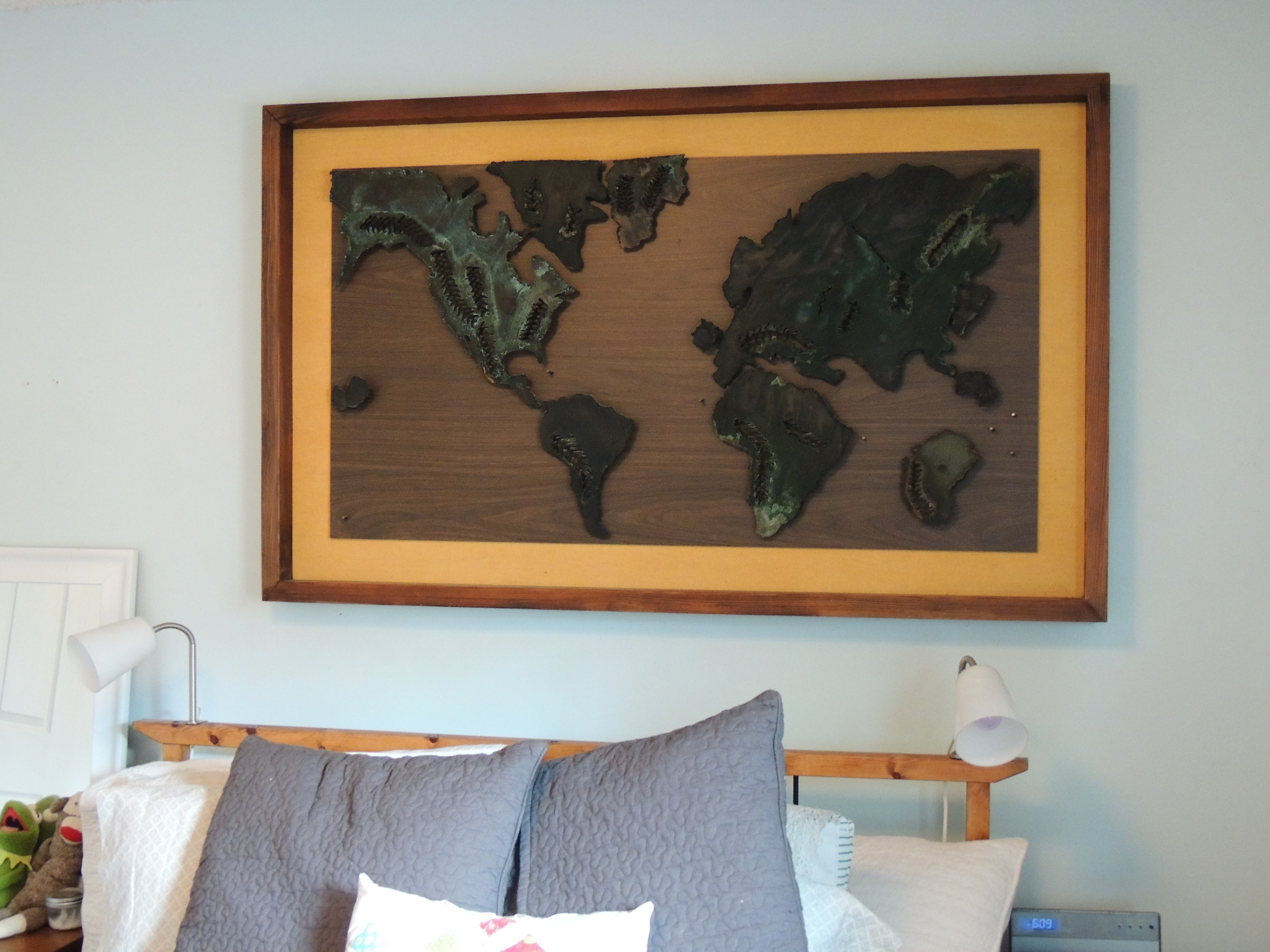 The picture below shows my absolute favorite art piece in the house. I love all things maps….not sure why. I have a stack of them in my spare room that are destined to become something artsy-fartsy in the future……anywhoooo…back to the awesomeness. I saw this piece at an estate sale with my mom. It was love at first sight….until I saw the price. ECK. I debated and debated over it…..and then my ever so smart mom suggested putting in an offer on it. If it did not sell by the end of the estate sale, then all offers are reviewed. I offered, they called, I picked up and we lived happily ever after.