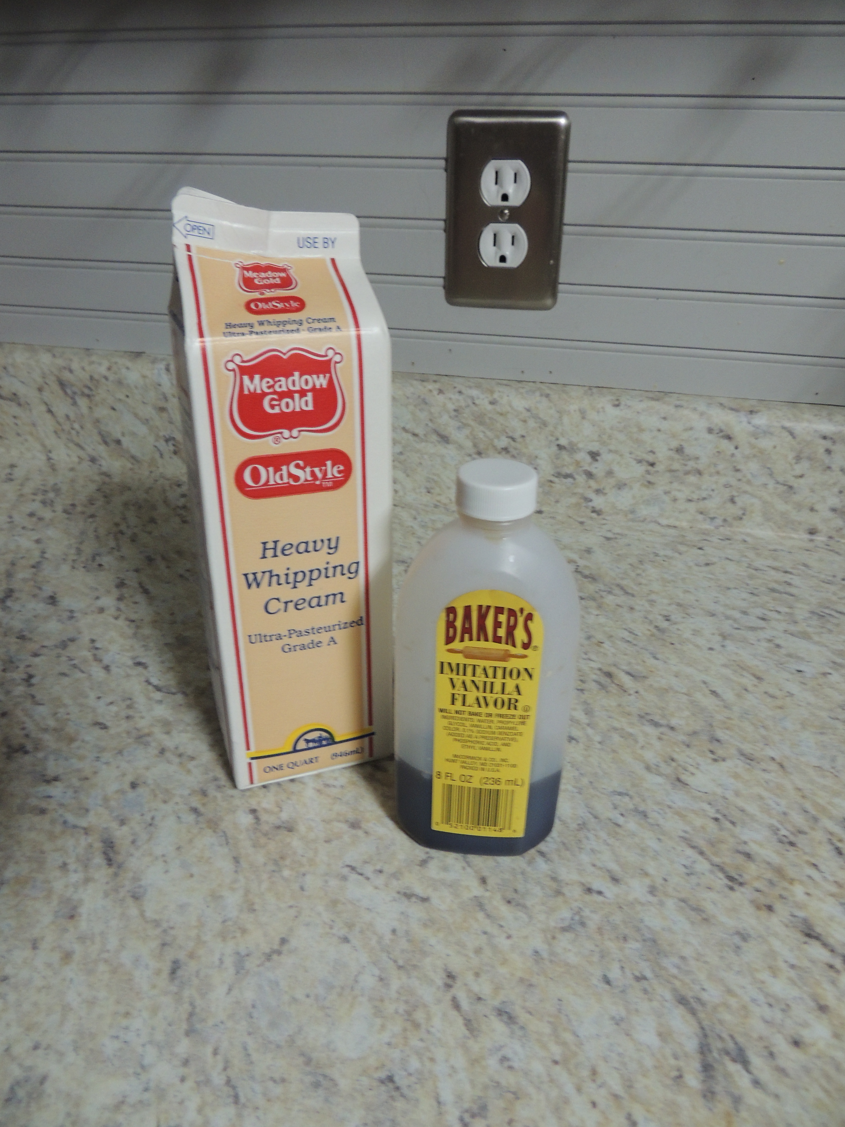 So I took some cream (1 quart) and some imitation vanilla (2 tsp)….yup, I am a cheater.