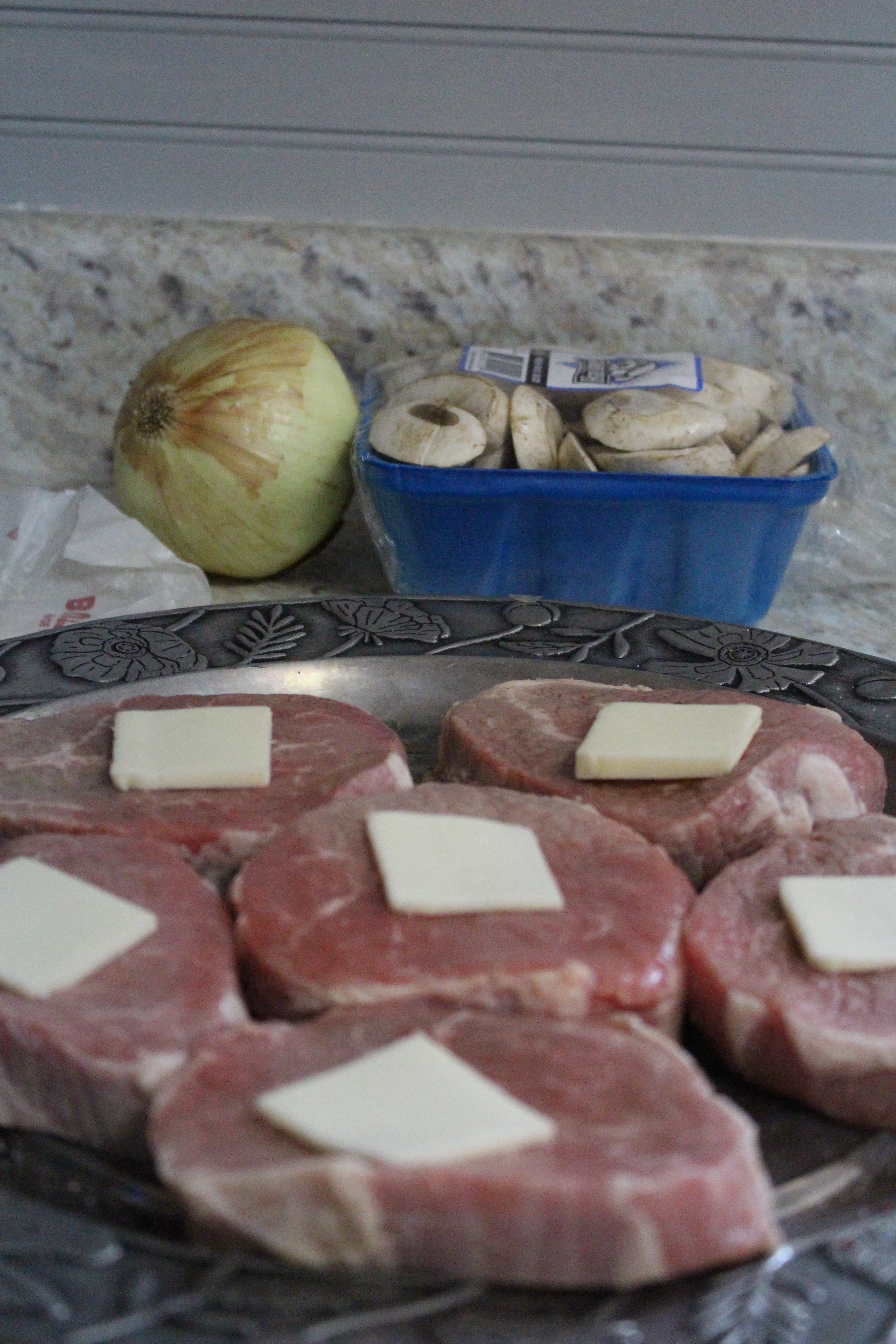 Saute the onions and mushrooms in some butter and get ready to layer that yummy awesomeness all over those steaks.