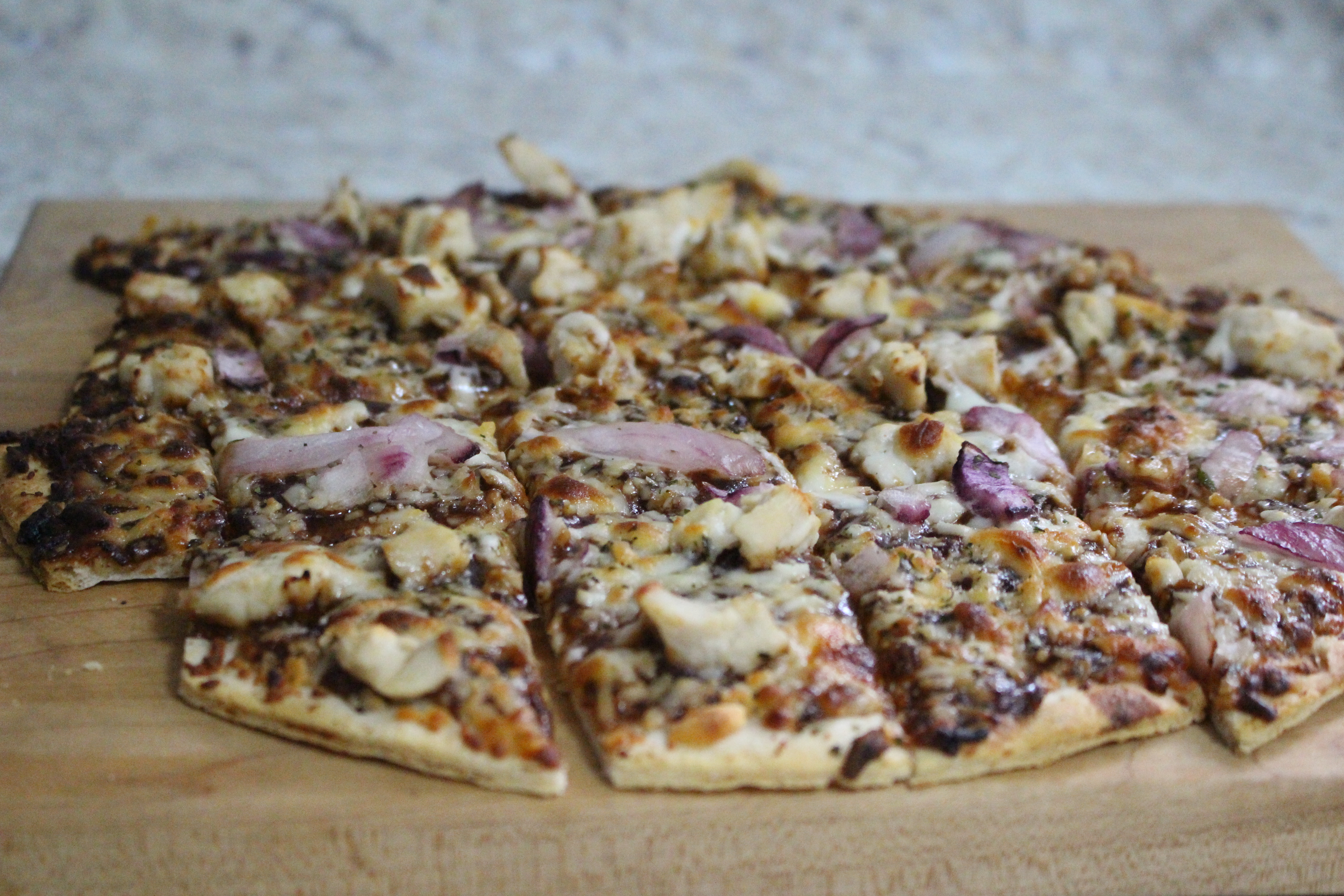 Our dinner started with a pre-made BBQ chicken pizza as an app. As we were snacking on that, I continued with making the rest of the meal.