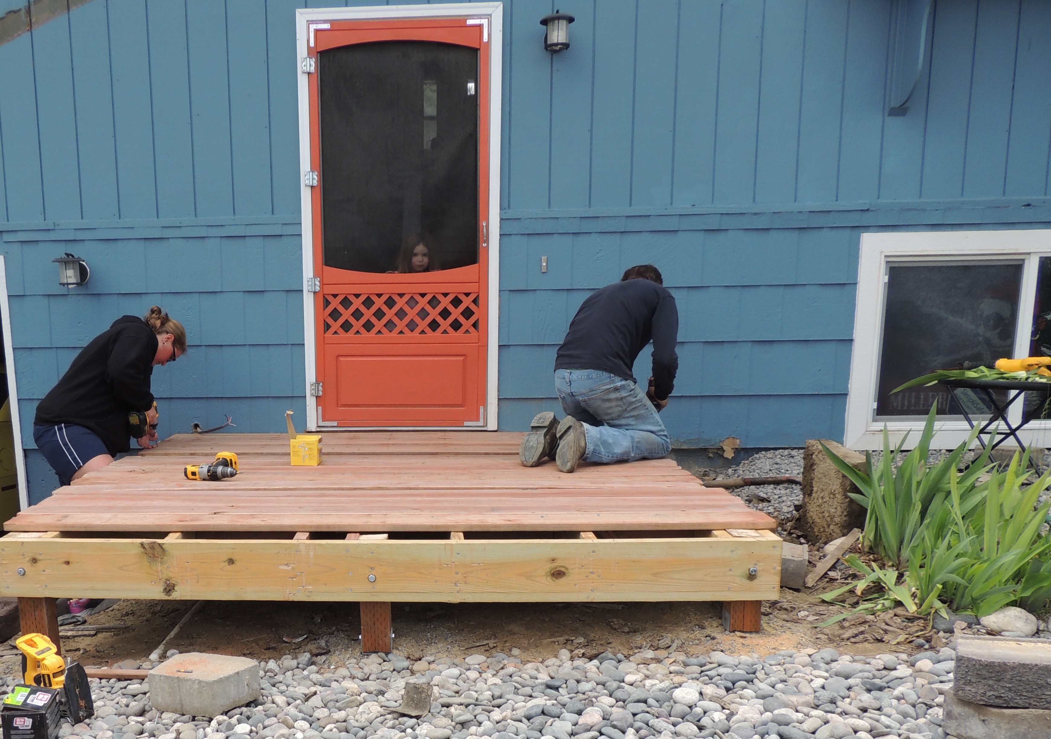 My sis-in-law was here and helped Dave with the deck boards. Thanks!