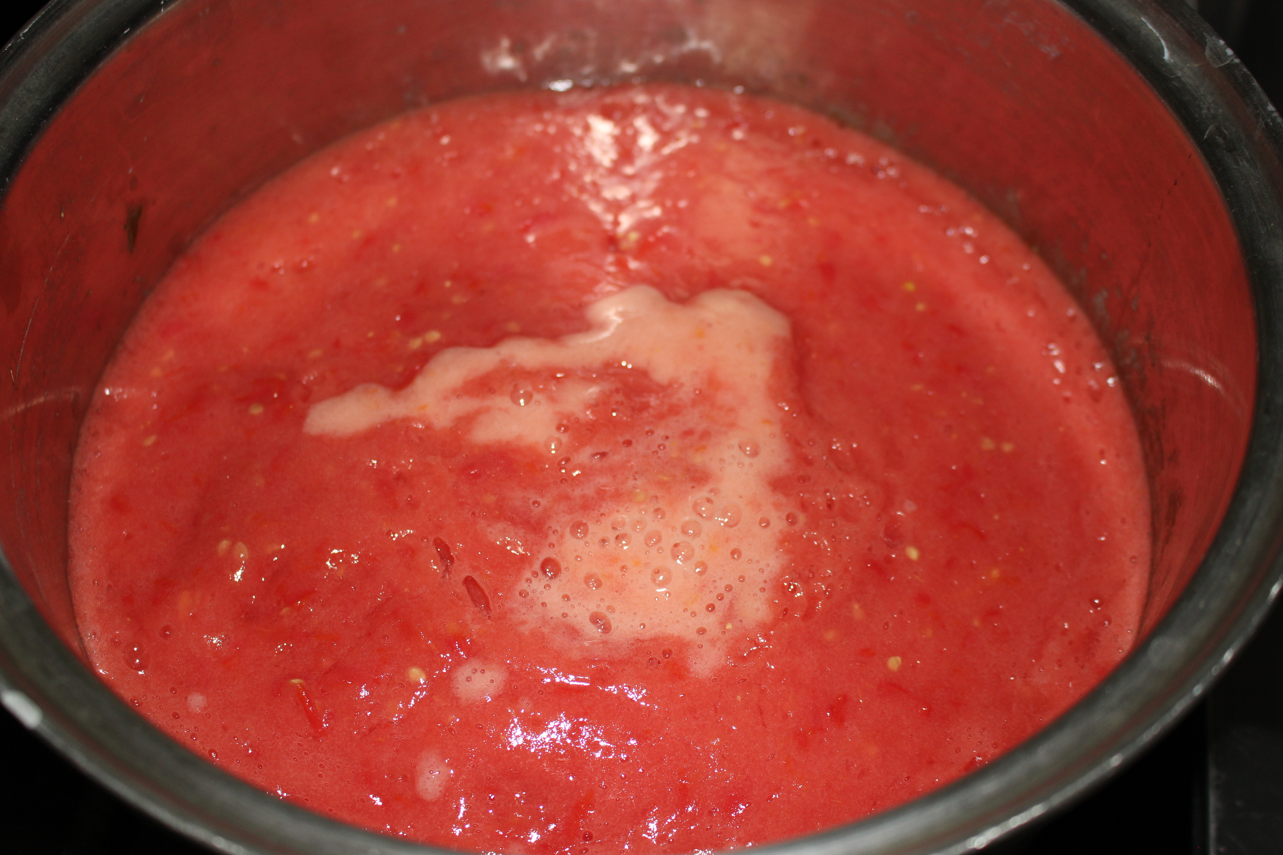 I used my blender to puree all the tomatoes with a cup of water and added that to a large pot…..um..that pic doesn’t have all of them.