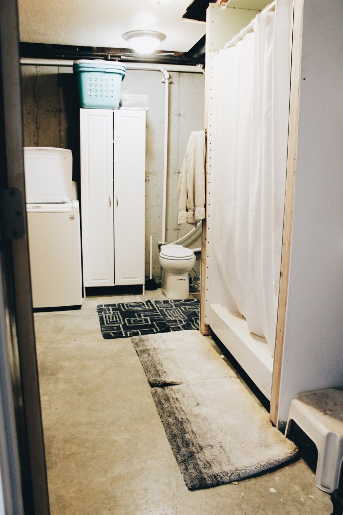 This is the first one I could find – after we moved the washer and dryer to the back wall, installed a toilet and shower.