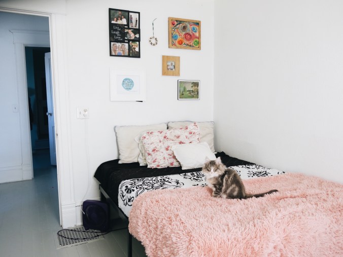 She is super jazzed that everything is up on the walls and that her fairy lights are up. The room is very small but it is the only one with a closet and that’s what was most important to her.
