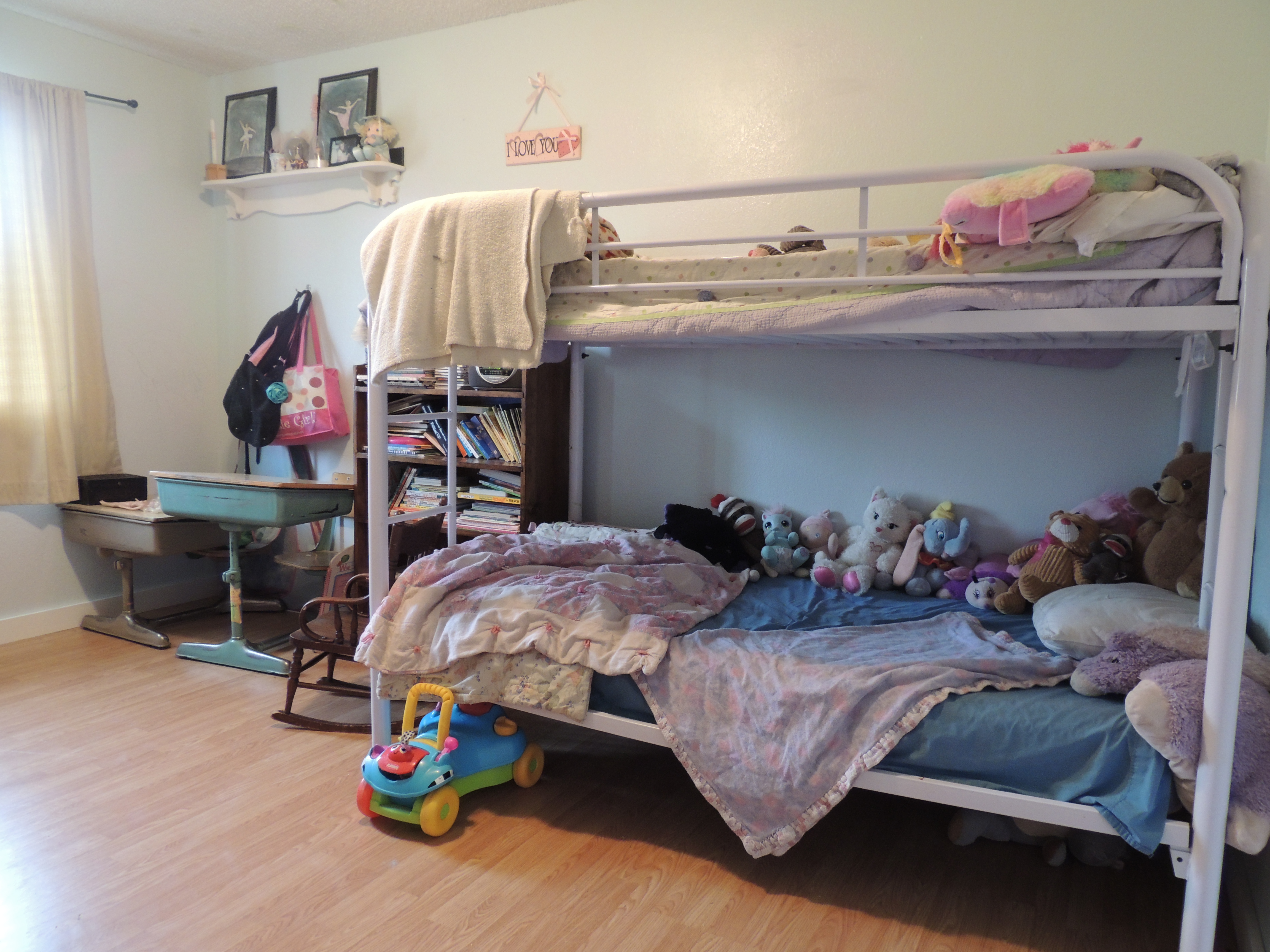 4. I purchased a new bed for Jane and it came in the mail today! First Officer of Destruction needed a new bed because the bunk bed was a tad on the broken side. Here is a before pic from when mister and I redid their floors…