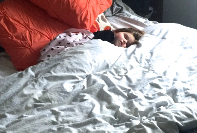 I am usually awakened by my alarm….that I push snooze on at least twice, but today I was greeted by a child’s butt. At some point Jane had crawled into bed with me and she was tossing and turning – she ended up kicking me in the ribs and that’s how I woke up with a butt in my face. On other days, I try to get up and get ready – hair, teeth, make-up and clothes, before the girls wake up. Sometimes I am successful, most times I am not. When the girls trudge up the stairs I am prepping myself for good morning or bad morning. you parents know what I am talking about. is getting dressed and brushing teeth the equivalent of throwing yourself into hot lava? yup…. The girls are inherently gabby and sunny natured – but if there has been any illness or sleeplessness – the bears come out.