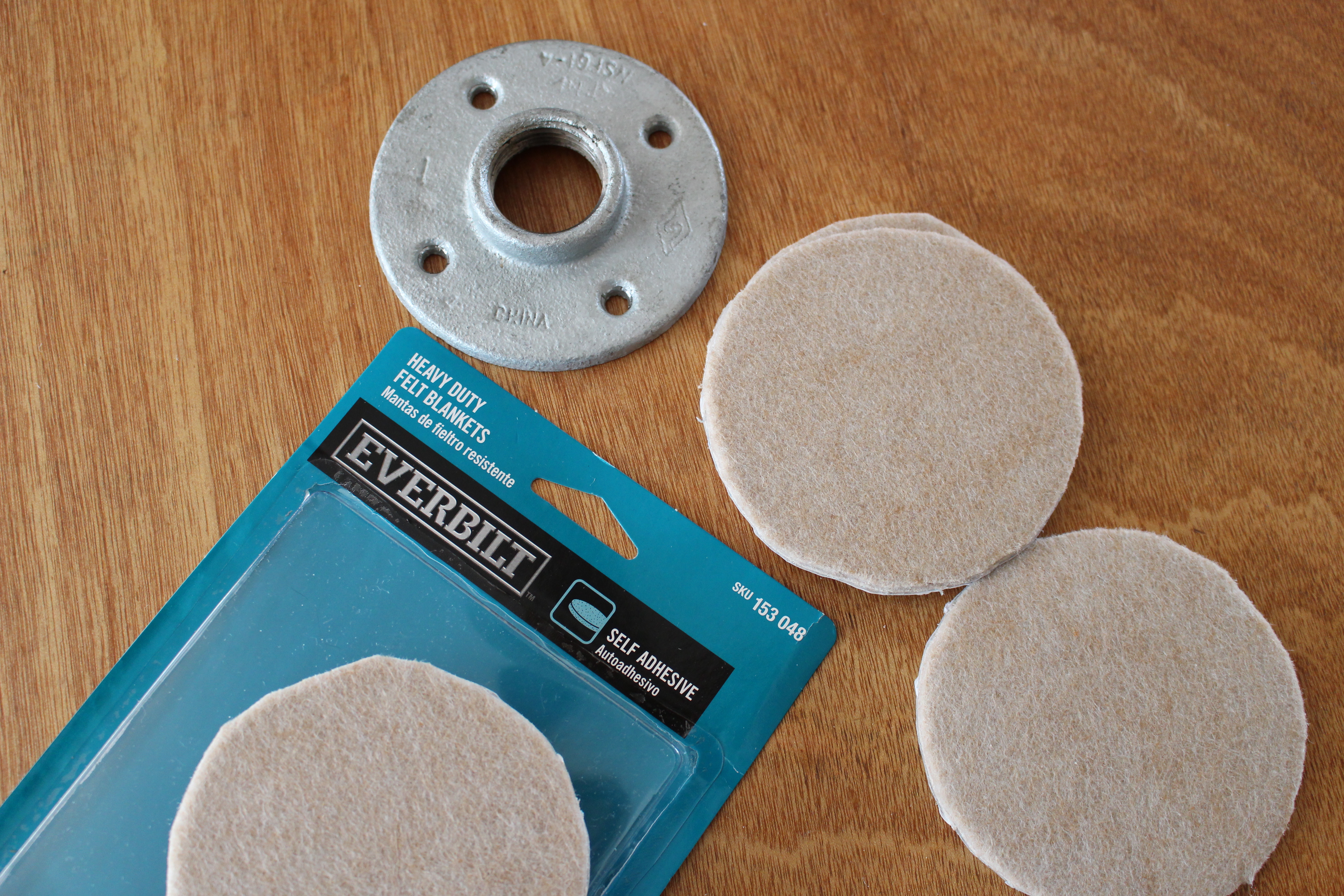 I purchased the above rectangles and cut them to size to keep my floor protected from those fittings.